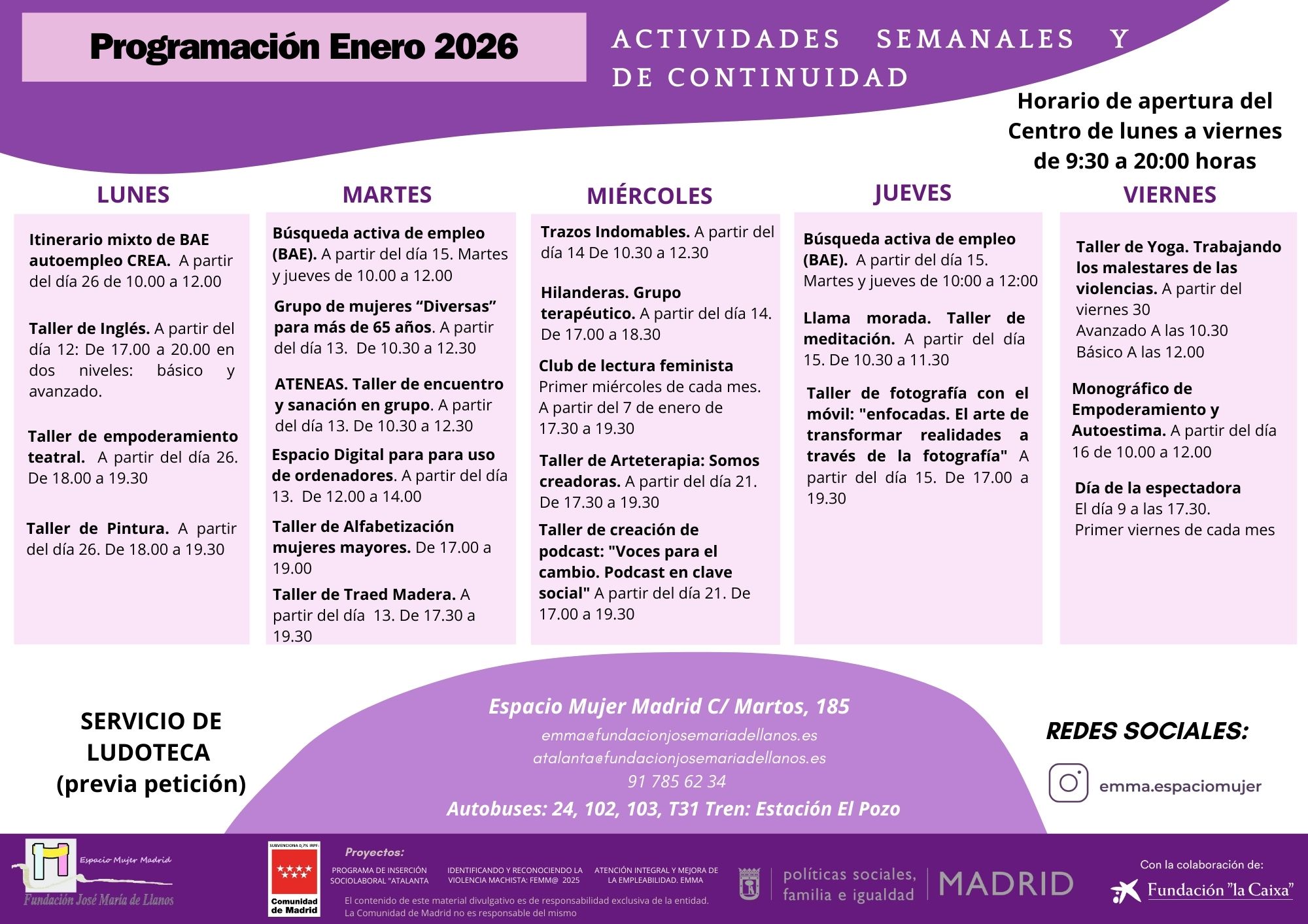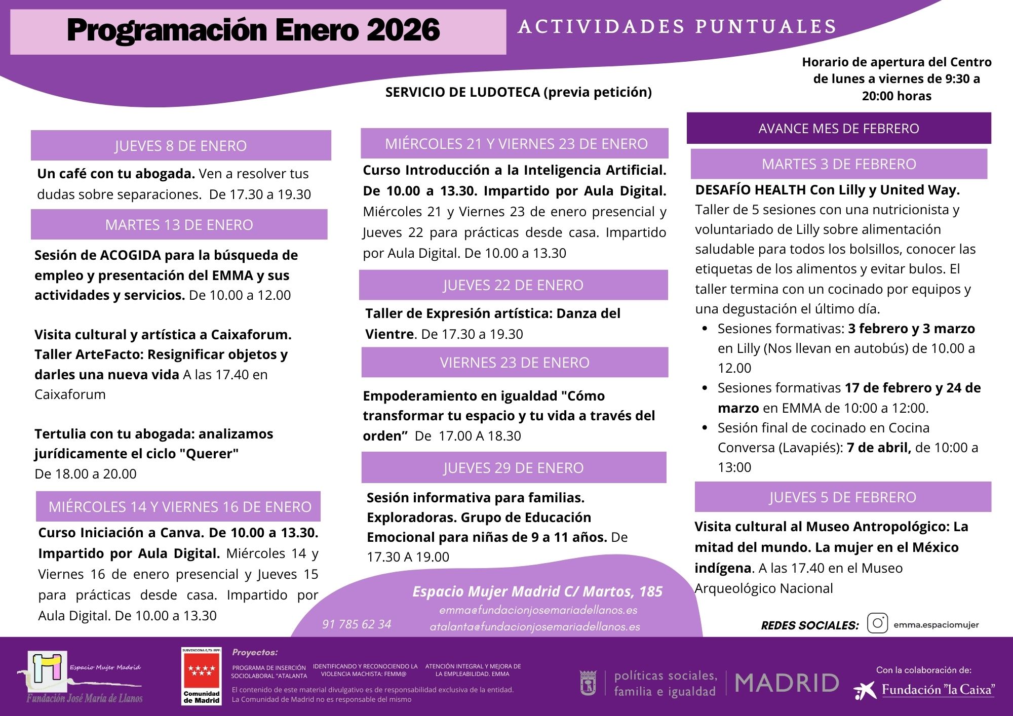 El ESPACIO DE FORMACIÓN Y EMPLEO EMMA y el Proyecto ATALANTA para la autonomía personal, social y económica, son servicios gratuitos dirigidos a mujeres que se encuentren en proceso de búsqueda de empleo o quieran mejorar su situación sociolaboral y necesiten orientación, formación y acompañamiento.
